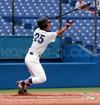 2004-09-30 好投手・那須野の前に12三振喫し完敗 硬式野球部 [硬式野球部]東都大学秋季リーグ・日大1回戦 <日大1回戦> 駒澤大3-7日本大 野球・初回、今季第1号本塁打を放った新井=神宮球場で(鹿野雄太撮影) ●服部、永井裕、上里田、増井、奥山-永井英、越智 (本)新井1号②(那須野) (三)秦 (二)秦 駒大は初回、2死三塁から4番新井の2点本塁打で先制。しかし二、三回と失策絡みで失点し、6点を奪われた。打線は今秋のドラフト候補・那須野の前に12三振を喫し、5回に1点を返すのがやっとだった。 太田誠監督 「狙い球を絞りきれず、那須野君を助けてしまった。投手陣も良くない」