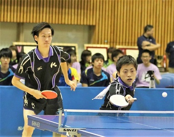 続く法大戦では、1番手松田がフルセットの末、試合を落とした。続く上野は高校時代の先輩である南波選手に2セットを取られてから、次のセットを20-18で取り、直後にもう1セット取った。ここで流れを引き寄せたかに見えたが、第5セットで反撃に遭い、力及ばず惜敗。3番手では今大会好調の水谷・二木ペアが勝利したが、後が続かず悔しいベスト16となった。
