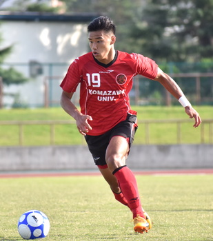 「(今日全体を振り返って)相手の攻撃に対して、前半は我慢して失点を無くしていこうという話だったが、失点をしてしまった。3失点をした中で、後半の立ち上がりに失点をしてしまったことが一番痛かった。(前期からその時間帯の失点に関する変化はあったか)去年からコーチや監督からも言われていて、意識はしていたが失点してしまった。そこが自分たちの弱い部分だと思う。(自身にボールが集まる時間が多かったが)今日は自分自身で仕掛けることはある程度できていたと思うが、クロスやフィニッシュに持って行くところの質が自分の課題。質を上げて得点に絡んでチームに貢献できるようにしたい。(ゴールライン側までドリブルで持って行く場面が目立ったが)行けるところまで行った方が点に繋がると思う。自分自身、前回が不甲斐なかったので今日はやってやろうという気持ちで臨んだが、まだまだ課題ばかり。次に繋げたいと思う。(セットプレーからの得点が増えているが、キッカーとしてはどういった意識を持っているか)キョーワァンや黎生さんとは練習の中でも速いボールで自分たちで場所を決めてと打ち合わせをしているので、そういうところが点に繋がっていると思う。(次節は前回対戦でゴールを奪っている桐蔭横浜大との対戦だが)2連敗をしてしまって次は絶対に勝ちが必要。自分自身は前期の開幕戦からゴールが取れていないので、点に絡むプレーをしてチームに貢献したい」