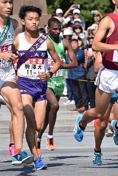 アップダウンの激しい5区では1年生の小原拓未が三大駅伝初出場。直前の日体大記録会では出雲駅伝へ向け「今日は記録会で大勢の人が走っていて引っ張ってもらっていたが、駅伝では一人で走る場面が出てくるので単独走がしっかりできて今日のようなそこそこのタイムでしっかりまとめられる強い選手になっていきたい」と語っていた小原。しかし課題であったこの単独走がしっかりできなかったと悔しさをにじませていた。