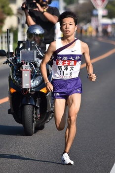 最終区を担ったのは、今年8月のユニバ―シアード(台北)ハーフマラソンの部で金メダルを獲得した片西景。35km地点付近では後続の早大を突き放すと、最後は7位でフィニッシュした。